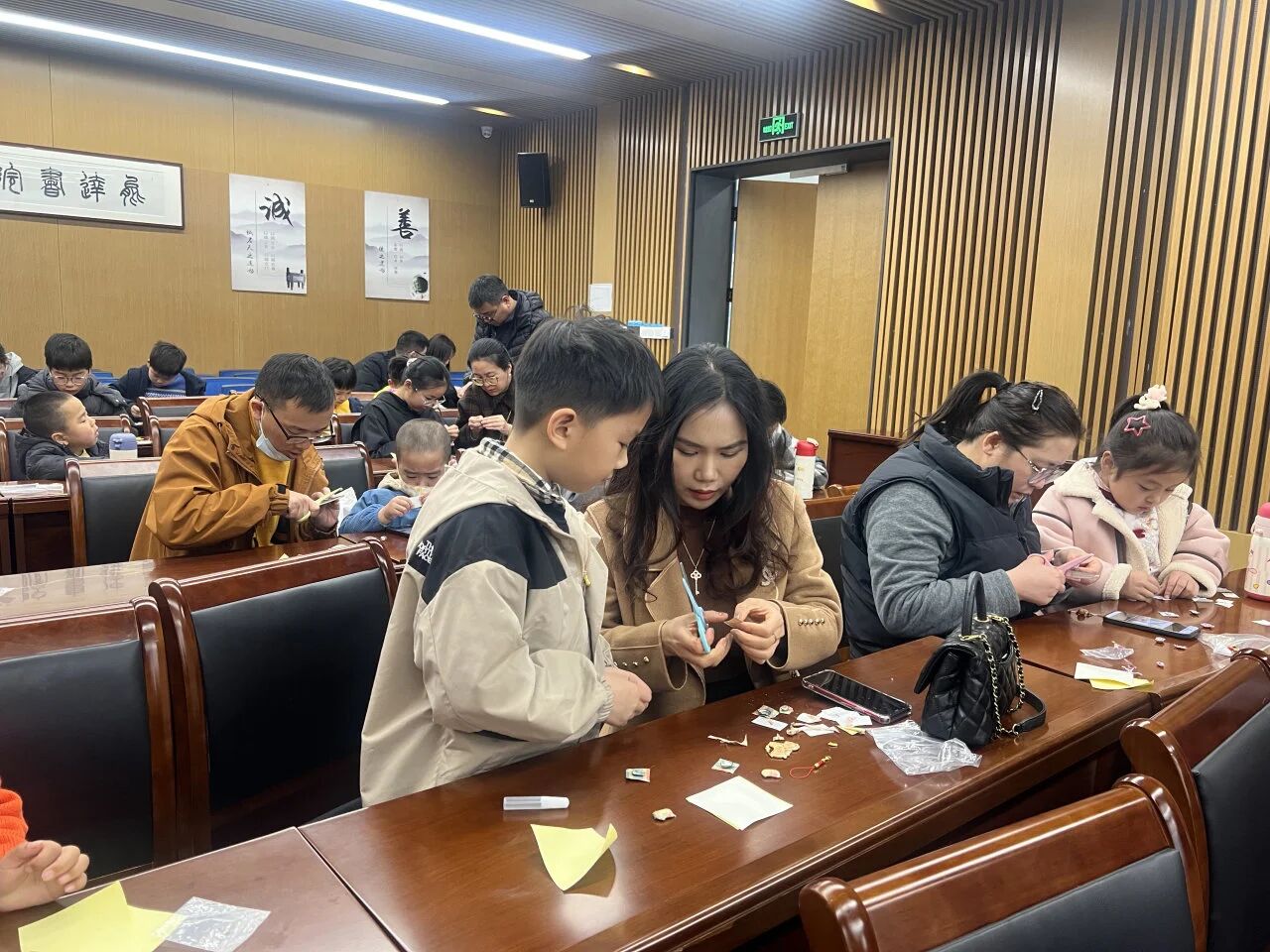 随后的非遗手工环节将活动推向高潮。在观看教学视频后,读者们跃跃欲试,拿起面前的锦布、底托、挂绳等材料,亲手制作宋锦小马钥匙挂饰。细心粘贴、按压定型……大家专注而投入,在一贴一合间,感受指尖上的非遗魅力。不一会儿,一匹匹憨态可掬的宋锦小马在读者手中诞生,大家互相展示、拍照留念,欢声笑语不绝于耳。