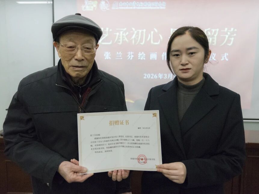3月11日上午,一场跨越时空的艺术对话在南通市经济技术开发区图书馆一楼报告厅温情上演。由南通市经济技术开发区社会事业局、南通开发区总工会主办,南通市经济技术开发区图书馆承办的“张兰芬先生画作捐赠仪式”在此隆重举行。张兰芬先生家属代表、昔日同事及社会各界嘉宾齐聚一堂,共同见证这份沉甸甸的文化善举与精神传承。