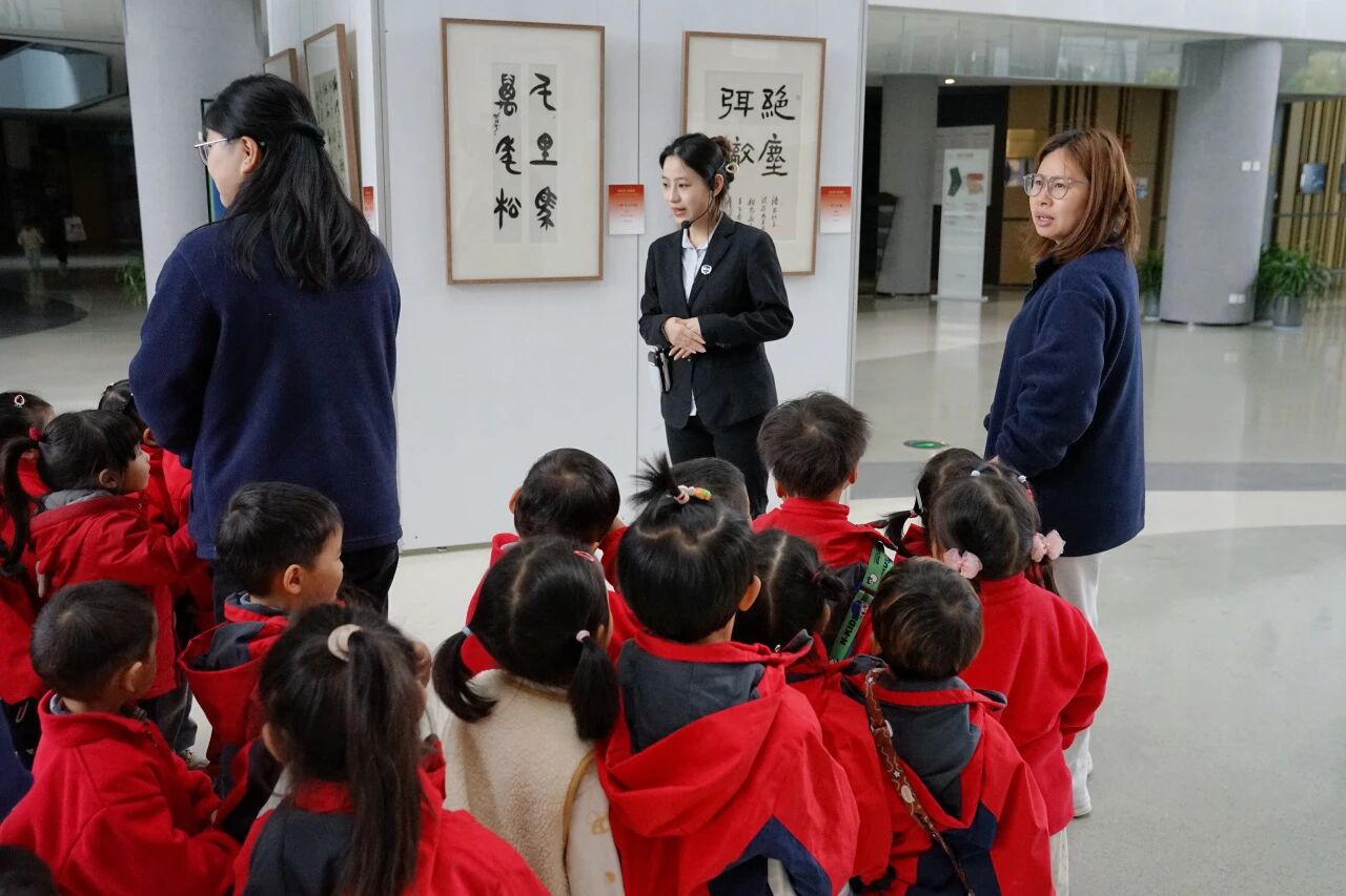 大家首先来到幼儿借阅室,在老师的组织下安静地翻阅绘本,沉浸在五彩斑斓的图画与故事中。随后,小朋友们走出图书馆,参观了公共文化中心一楼中庭展览。展览结束后,大家重新回到馆内,在馆员的引导下继续参观了自助借还机区域、青少年借阅室和视障阅读室等区域。孩子们睁大好奇的眼睛,认真观察着这个充满书香的全新世界。
