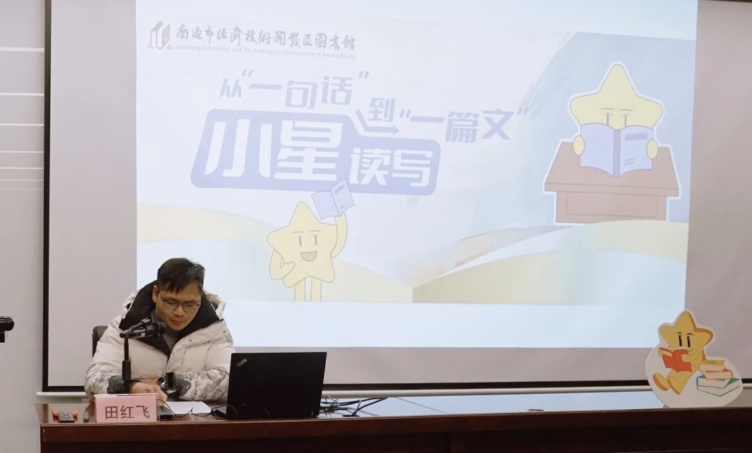 1月10日上午,南通市经济技术开发区图书馆一楼报告厅,被盎然的童趣点亮。“小星读写”系列写作启蒙课程的第一期第一课在此温暖启幕,孩子们在作家田红飞老师的引领下,开启了一场别开生面的“句子魔法”之旅,学习如何让笔下的文字生动起舞。灵感的火花,在专注的目光间悄然流动。