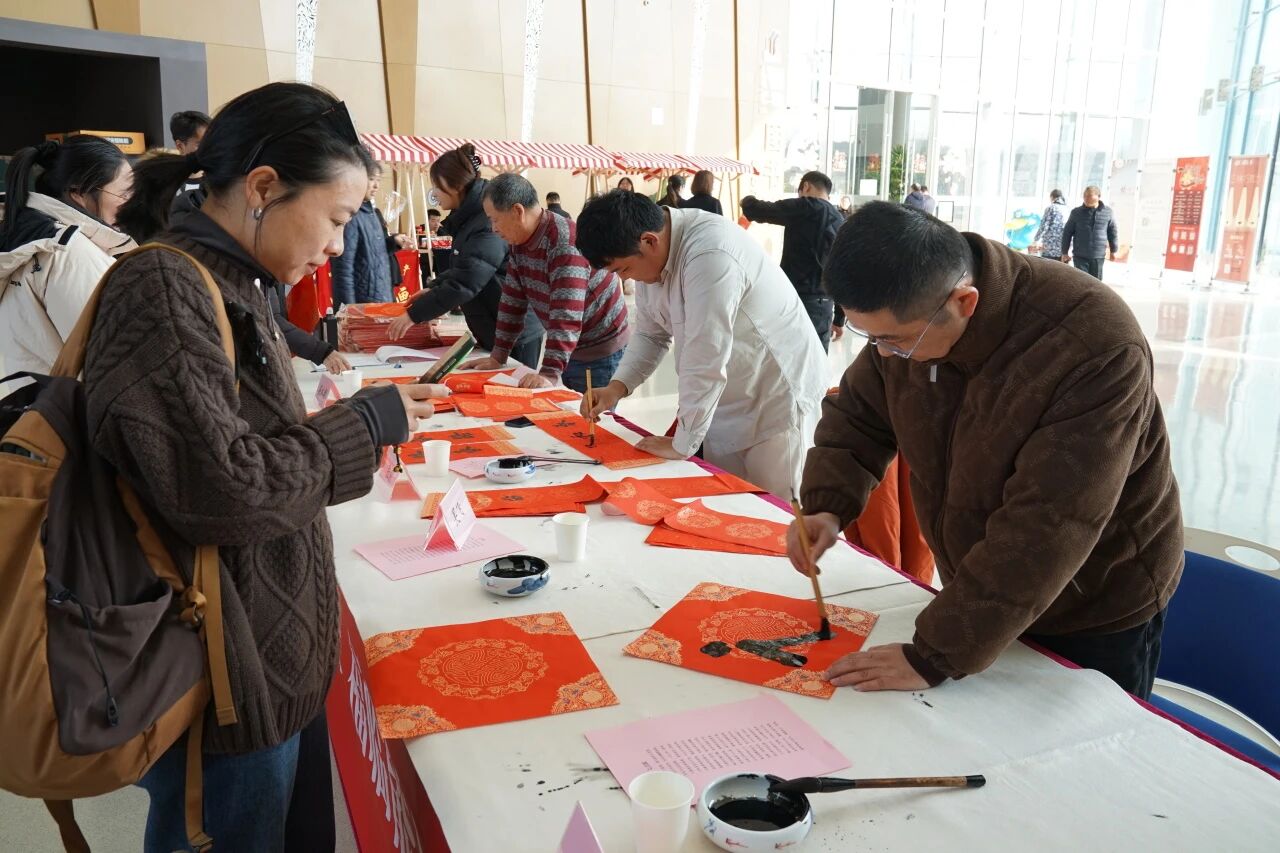 活动现场不仅翰墨飘香,更设置了热闹的非遗集市,非遗糖画、特色零食等摊位依次排开,传统技艺与市井烟火交融,让公共文化中心充满浓浓的年味儿。此外,专门布置的新春打卡区吸引众多读者拍照留念,定格温馨瞬间。读者们纷纷表示,这场活动既收获了新春祝福,也加深了对中华优秀传统文化的热爱。