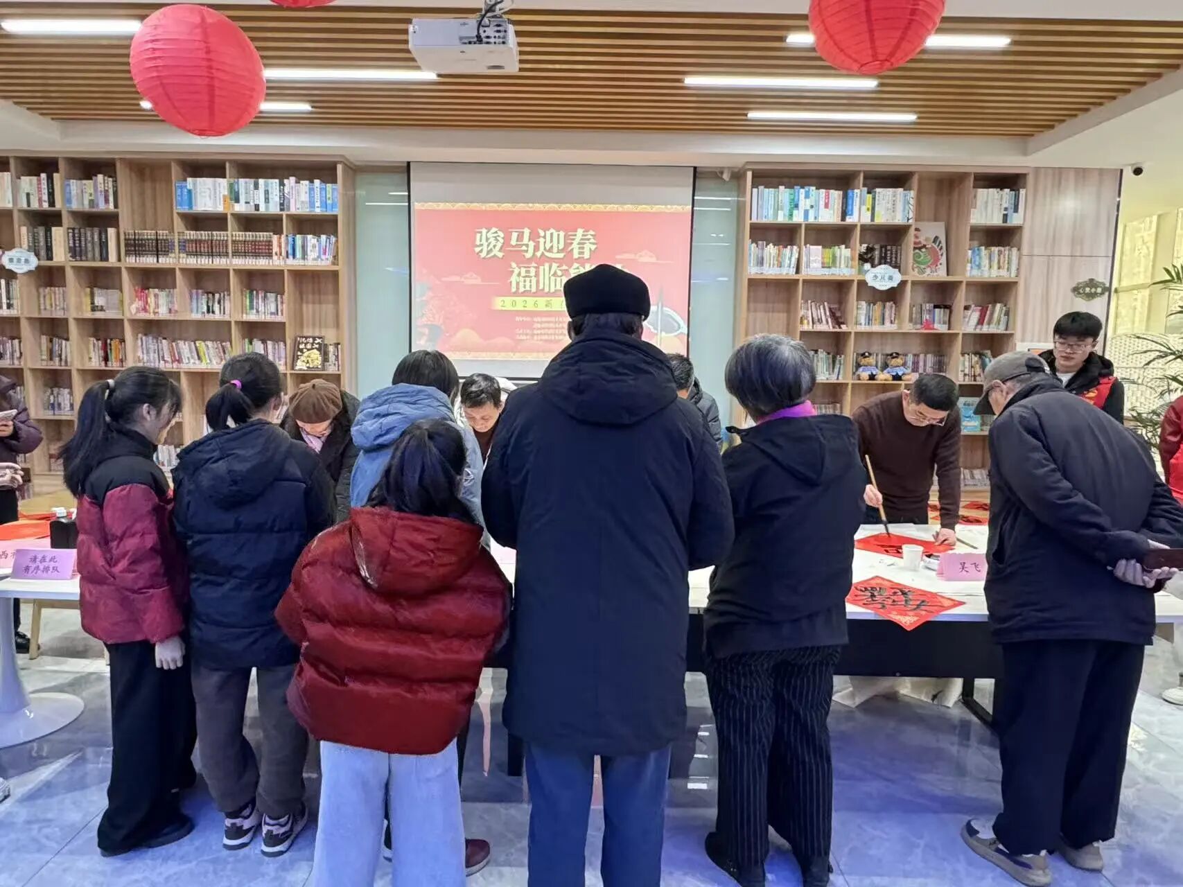 为持续传递新春祝福,弘扬中华优秀传统文化,2026年2月4日至6日,由南通市经济技术开发区社会事业局、南通市经济技术开发区总工会主办,南通市经济技术开发区图书馆承办的“骏马迎春 福临能达”新春送福系列活动第二至第四站接续开展,分别走进开发区公共文化中心、中兴街道民主港社区书吧和能达大厦,将饱含年味的墨香与暖意送到不同群体身边。